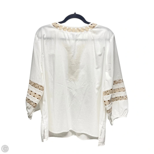Top Long Sleeve By Time And Tru In Tan & White, Size: 2x