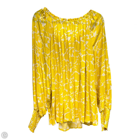 Top Long Sleeve By Terra & Sky In White & Yellow, Size: 2x