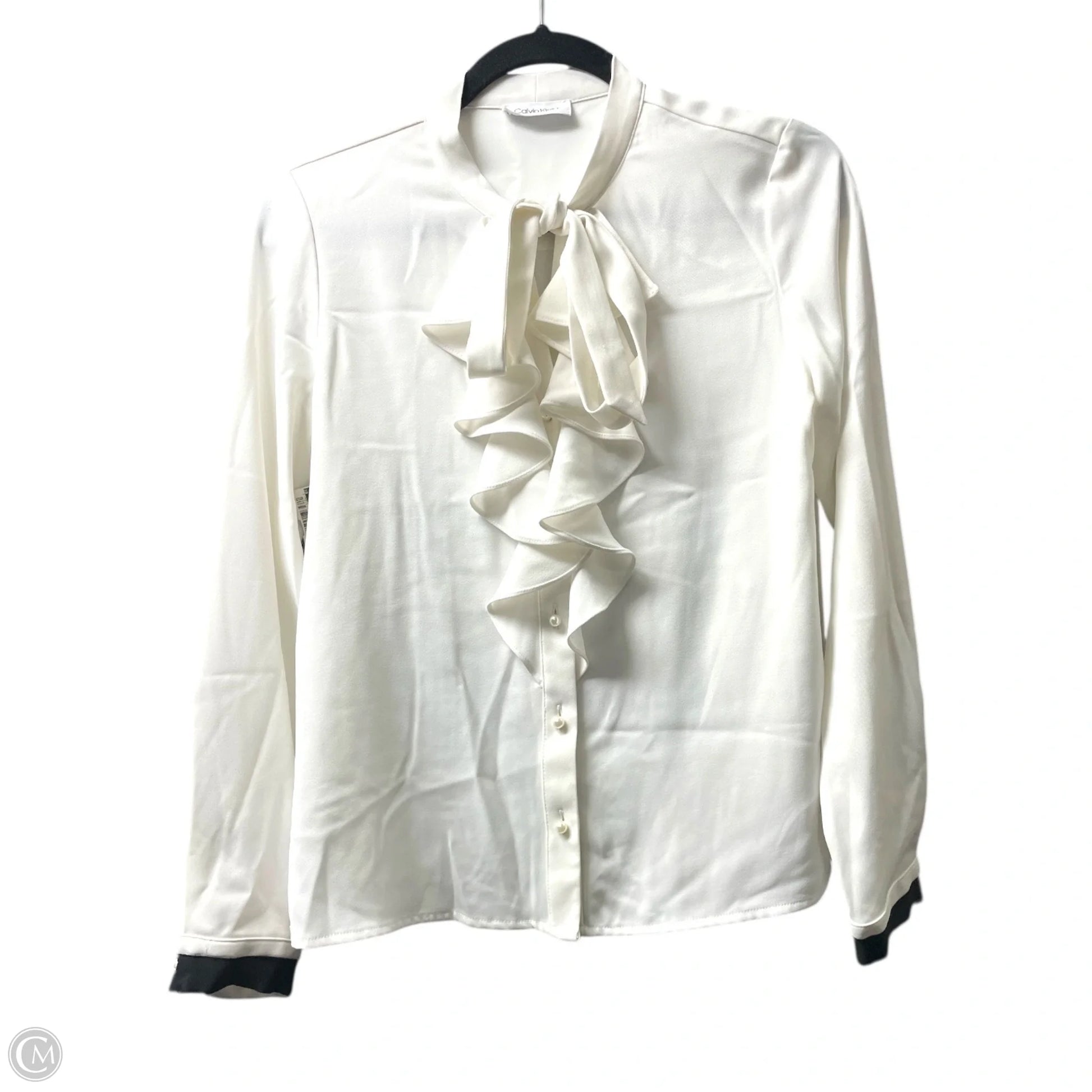 Blouse Long Sleeve By Calvin Klein In Ivory, Size: Xs
