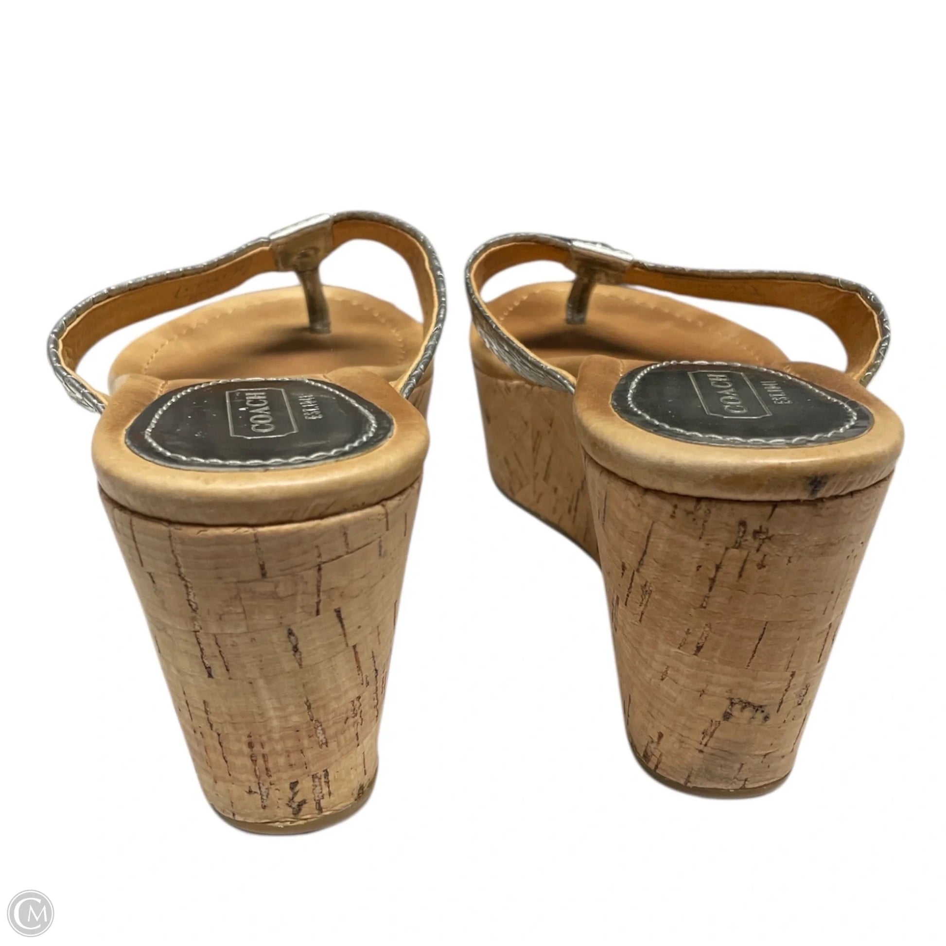 Sandals Designer By Coach In Silver & Tan, Size: 6