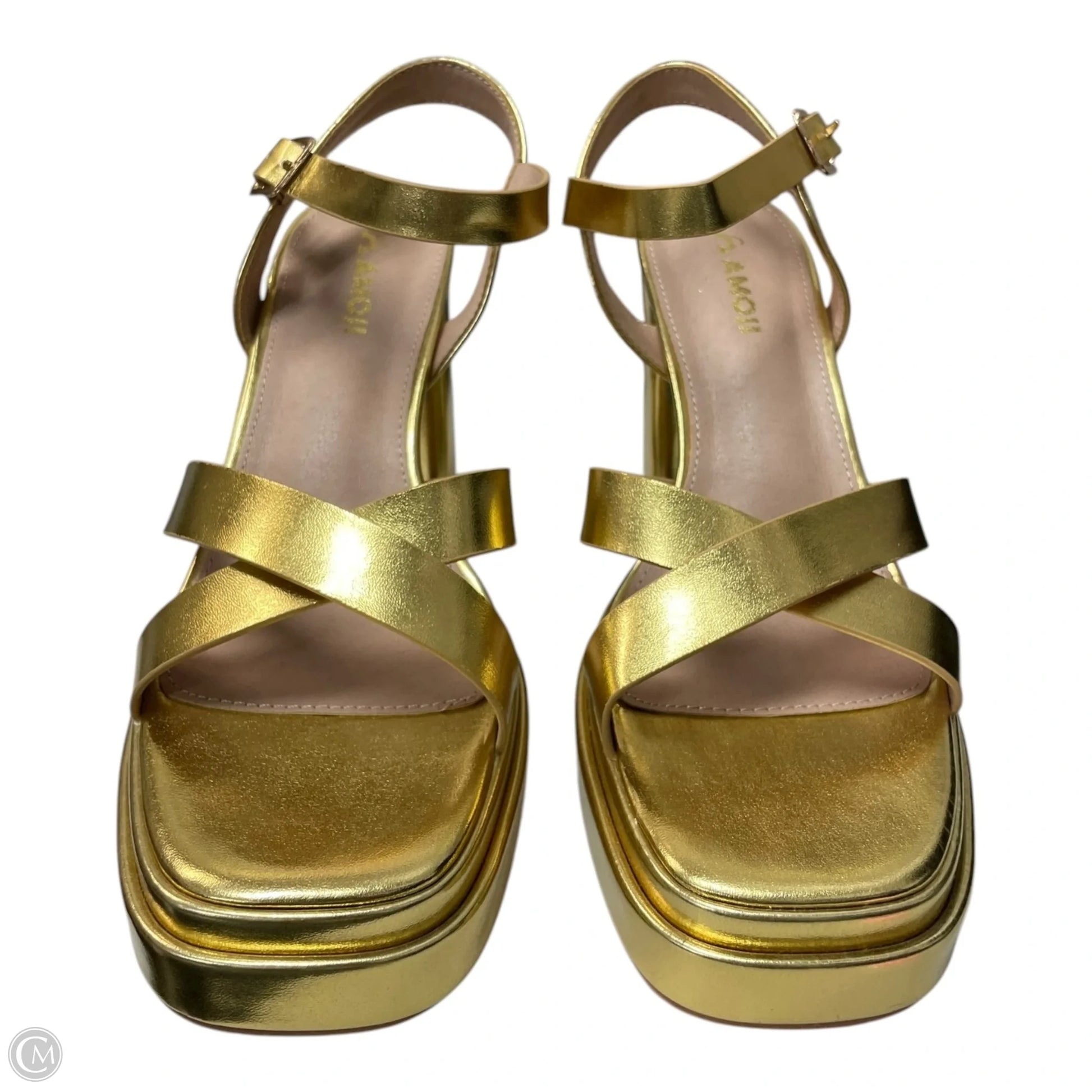 Sandals Heels Block By AMOJI - In Gold, Size: 8