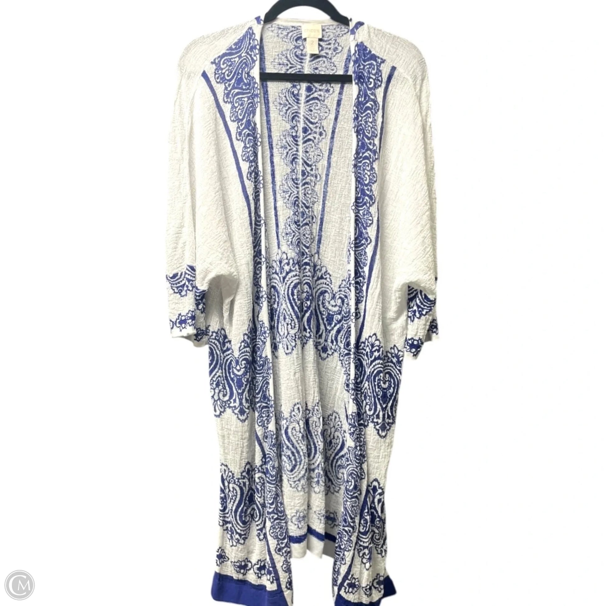 Sweater Cardigan By Chicos In Black & White, Size: L