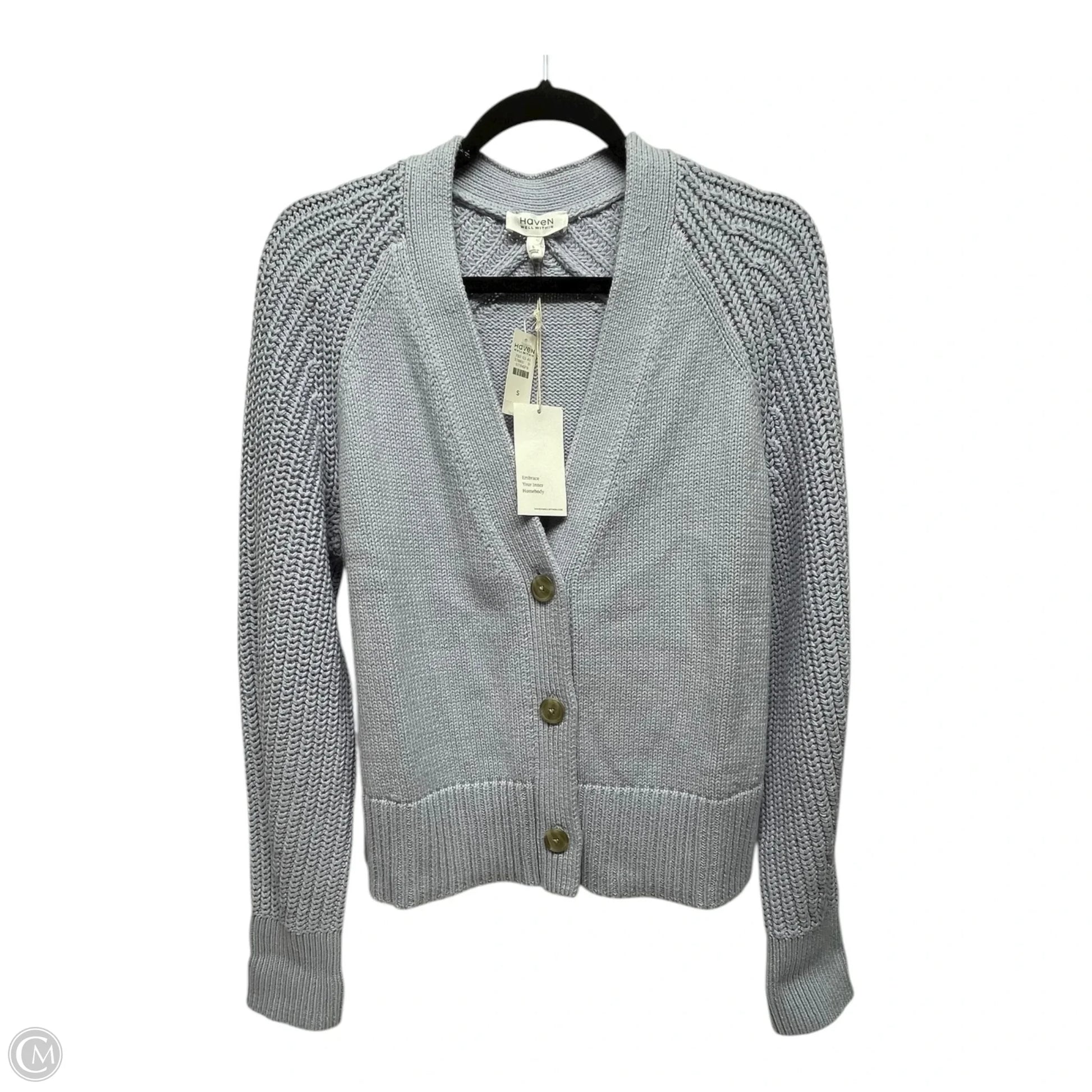 Wrap yourself in cozy comfort with Haven's blue cardigan, size S. Effortless style for any day.