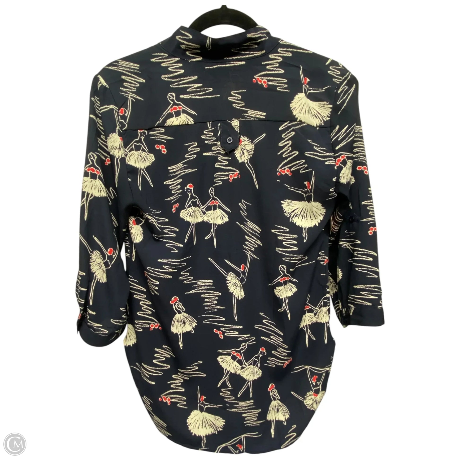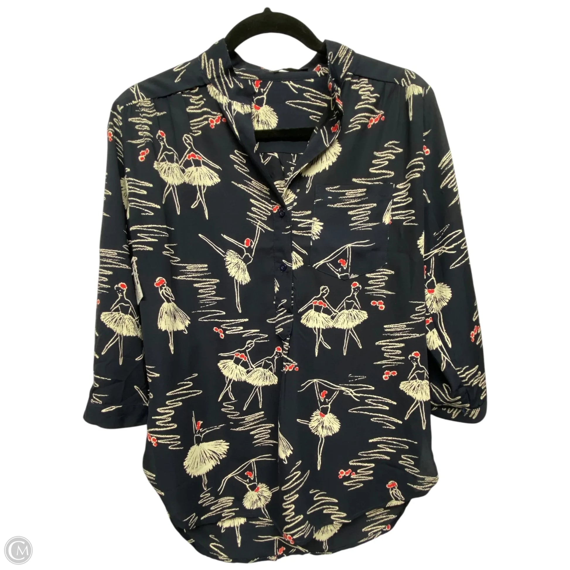 Top 3/4 Sleeve By Cals In Blue & Cream, Size: S