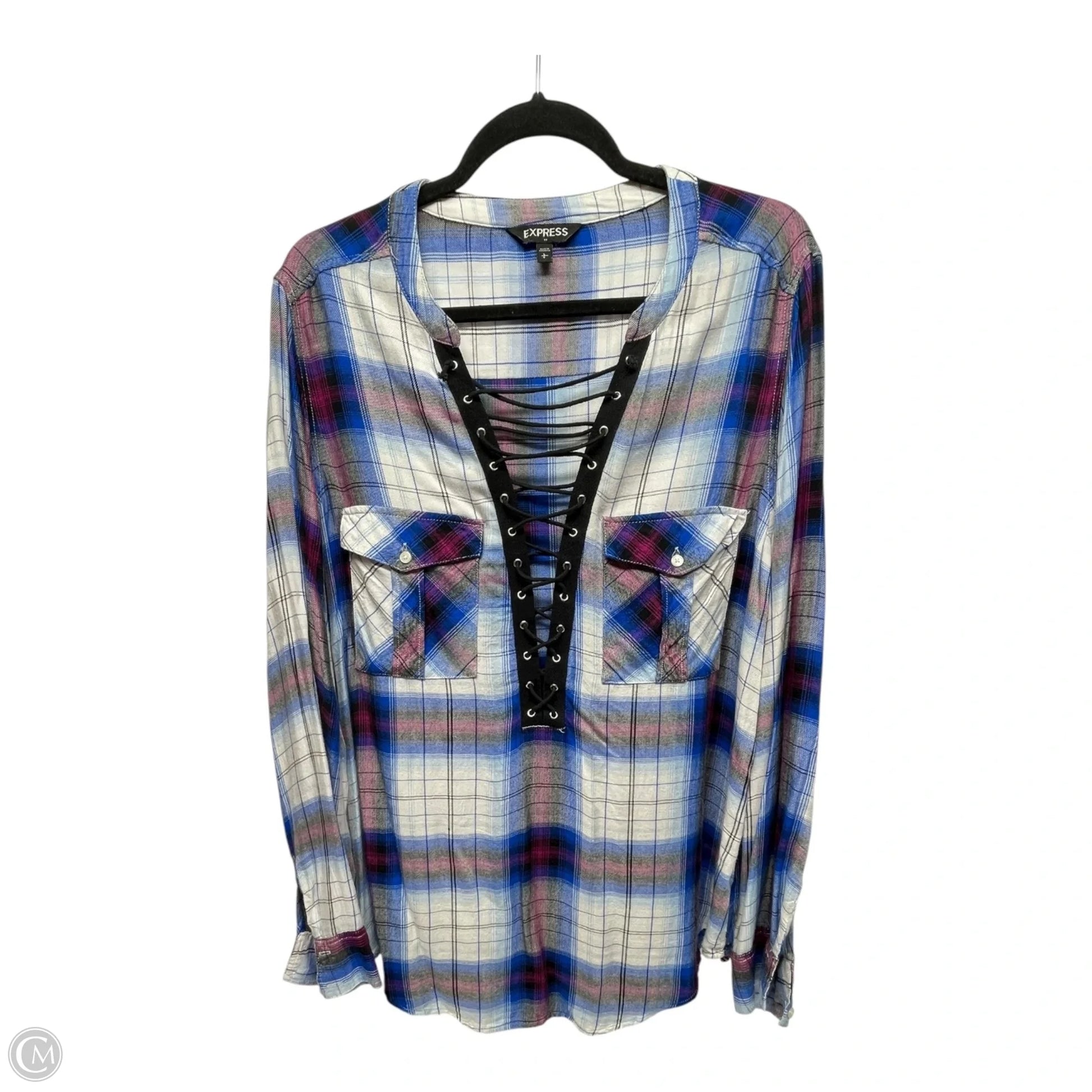 Top Long Sleeve By Express In Plaid Pattern, Size: L
