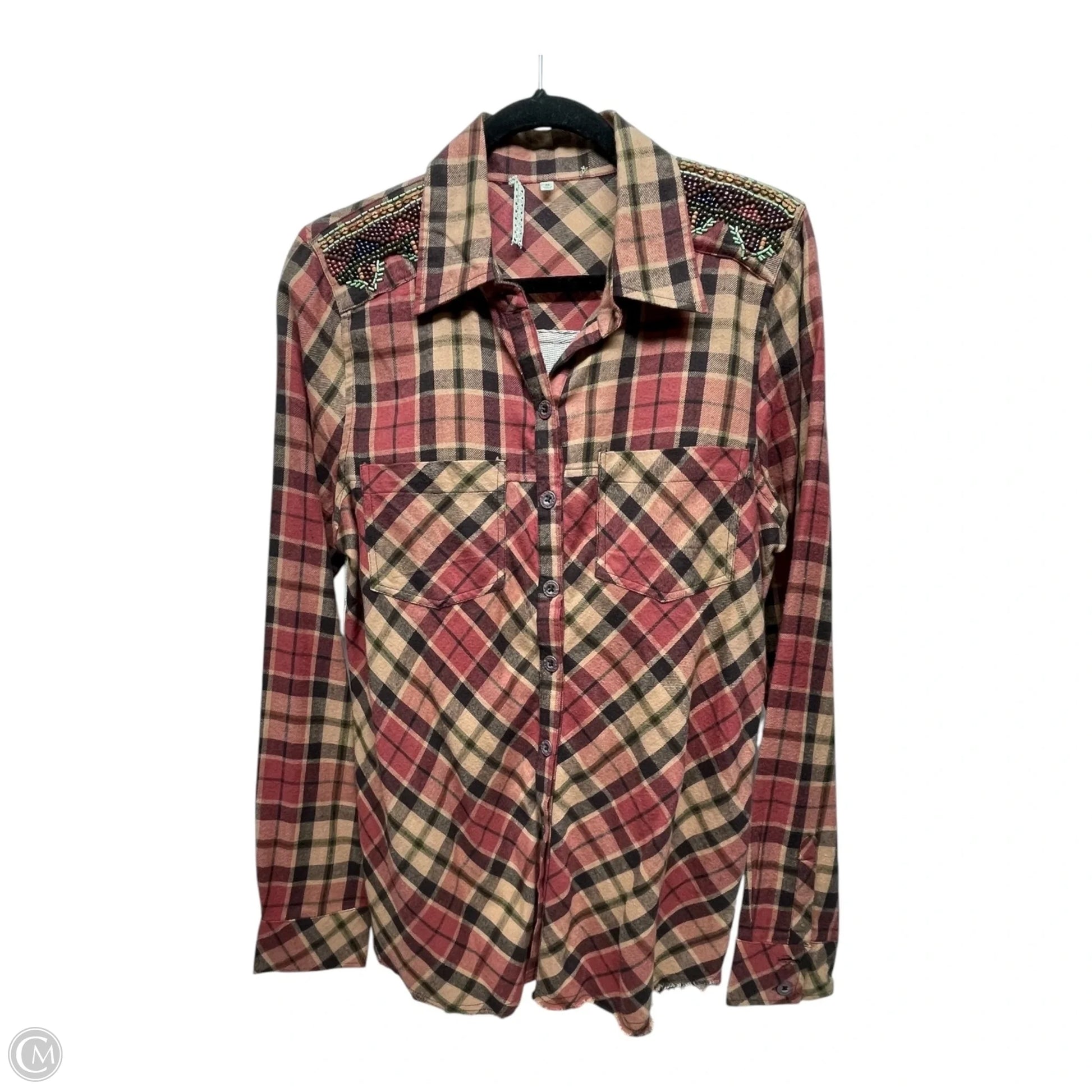 Top Long Sleeve By Gimmicks In Plaid Pattern, Size: M