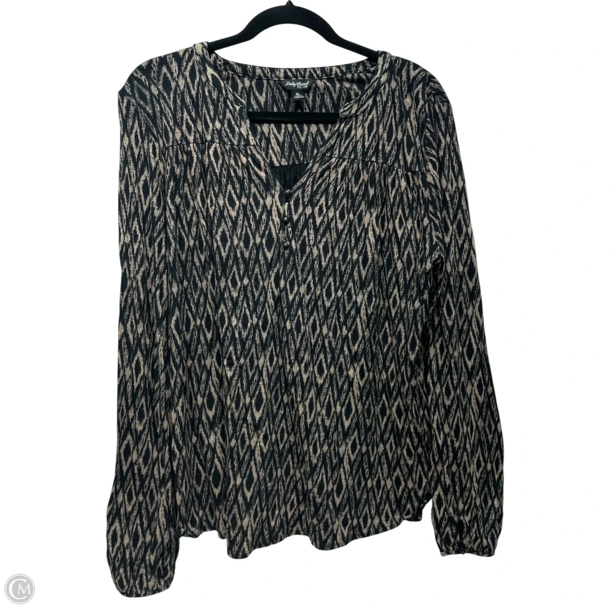 Top Long Sleeve By Lucky Brand In Black & Tan, Size: Xl